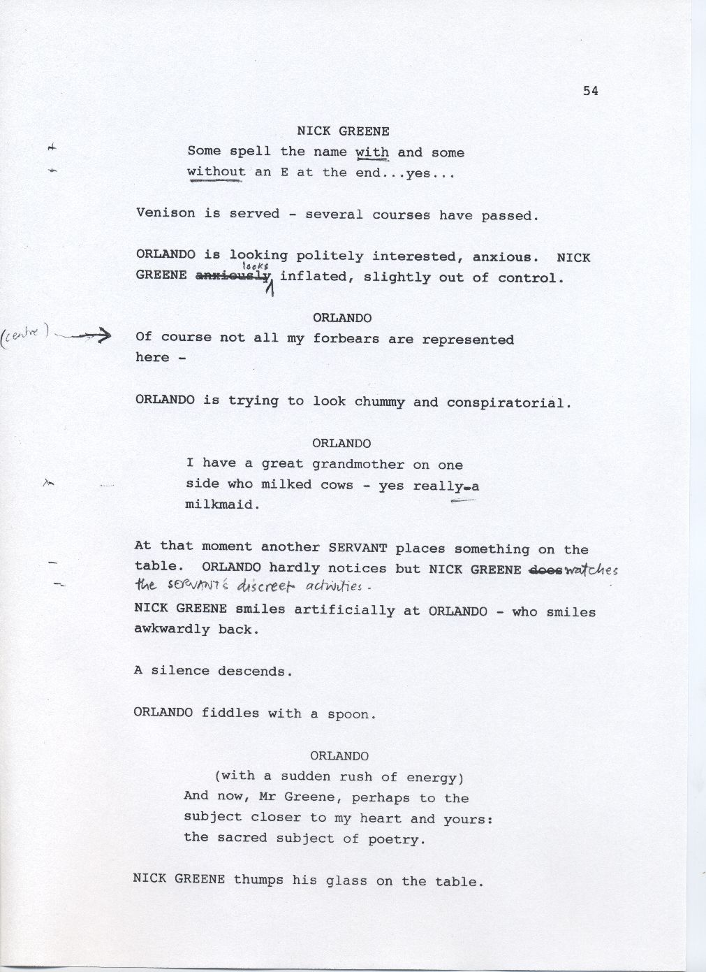 Description Page 54 of rough draft of scene 67. Black text on white A4 with pen annotations.