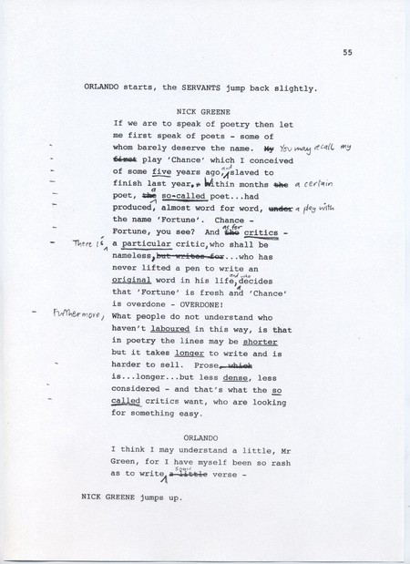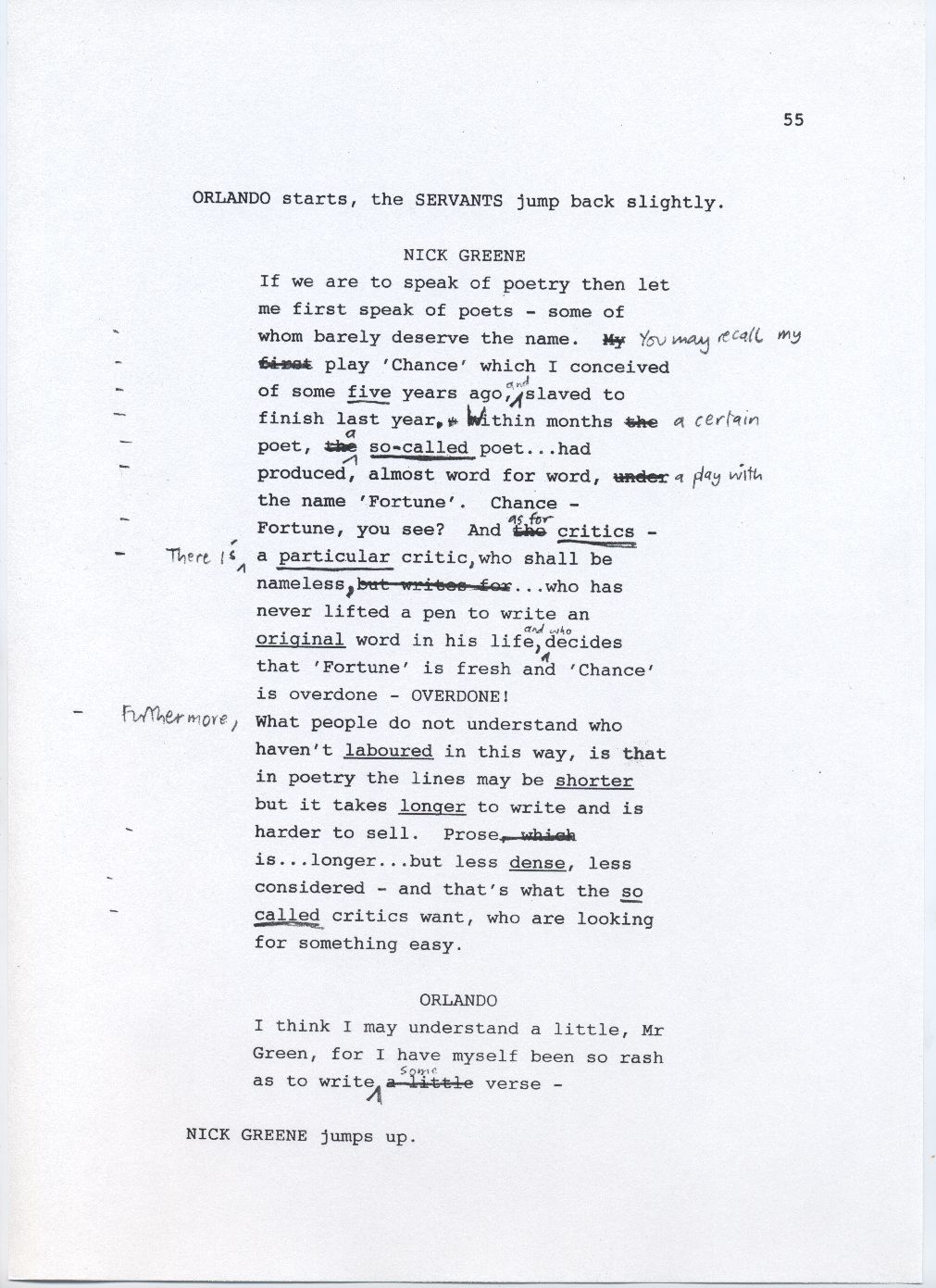 Description Page 55 of rough draft of scene 67. Black text on white A4 with pen annotations.