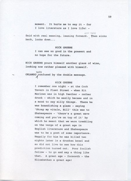 Description Page 59 of rough draft of scene 67. Black text on white A4 with pen annotations.
