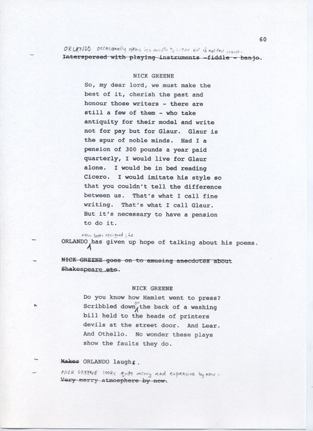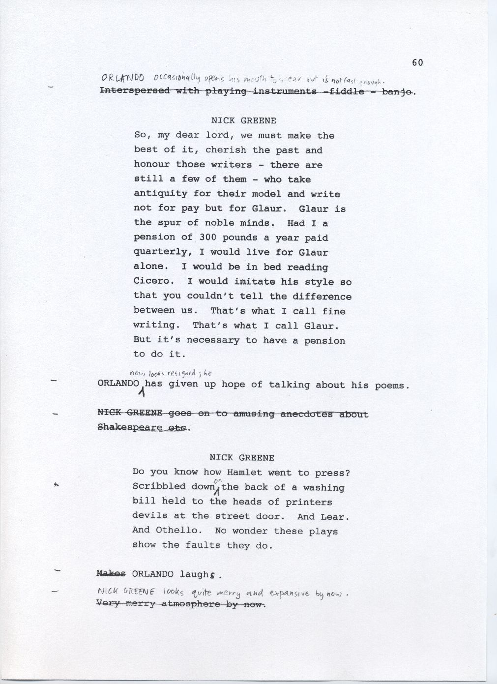 Description Page 60 of rough draft of scene 67. Black text on white A4 with pen annotations.