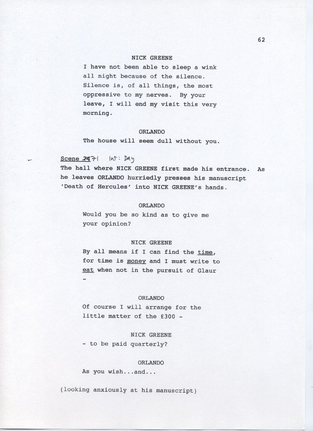 After looking through multiple drafts of the script, I noticed that the title of Orlando\'s manuscript changes twice. It begins as \"The Oak Tree,\" but evolves into \"The Death of Hercules,\" and finally becomes \"Death of a Lover.\" What is the significance of each of these titles in relation to the film? Had Sally Potter kept one of the original titles, would we have drawn the same conclusions about the manuscript, and its relationship to other themes in the film?