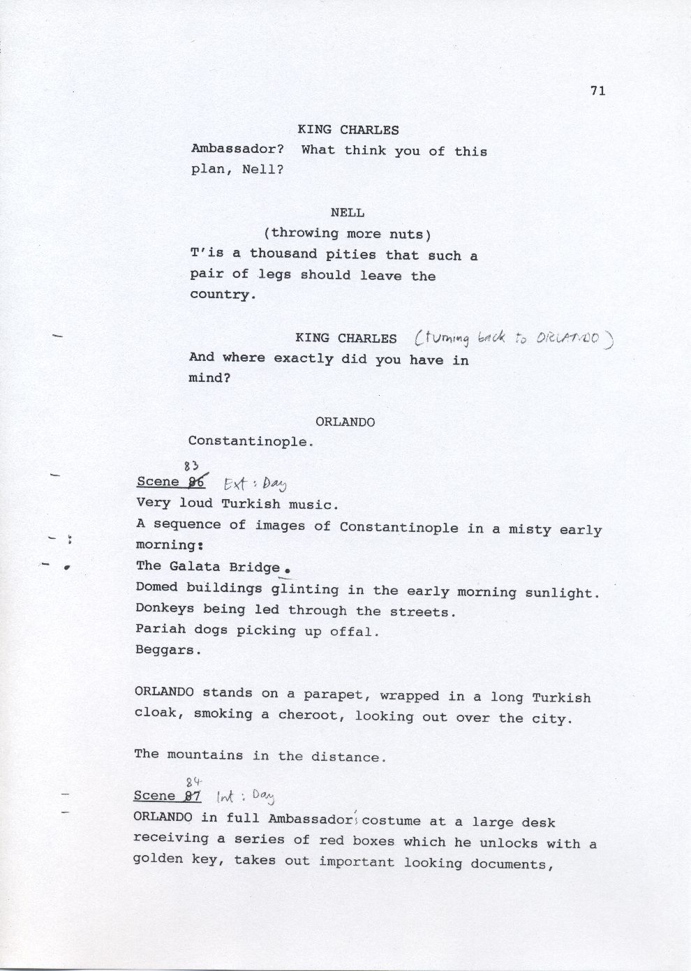 Description Page 71 of rough draft of scene 82, scene 83, scene 84. Black text on white A4 with pen annotations.