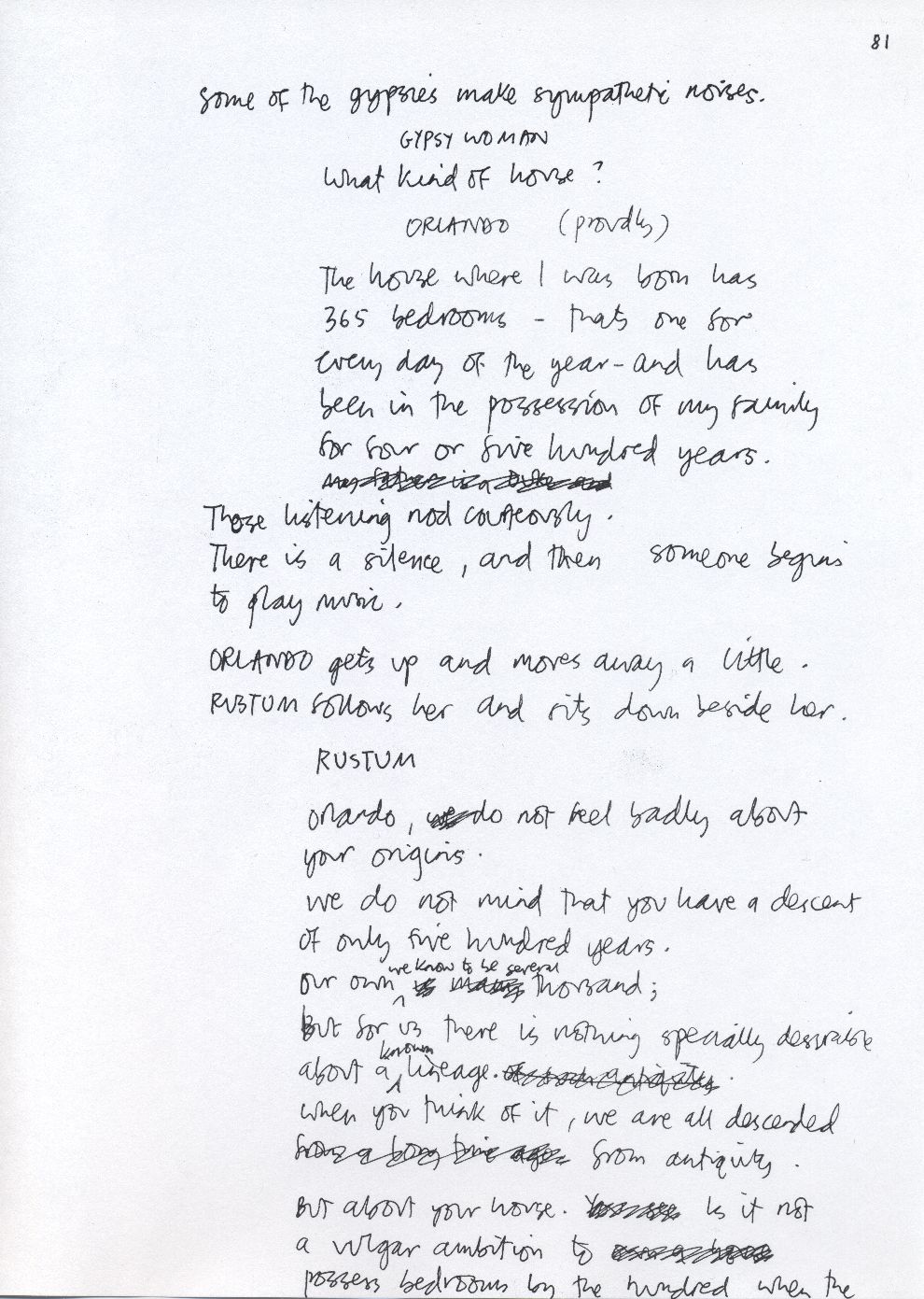 Description Page 81 of rough draft of scene 98. Hand written in black ink on A4 with pen annotations.