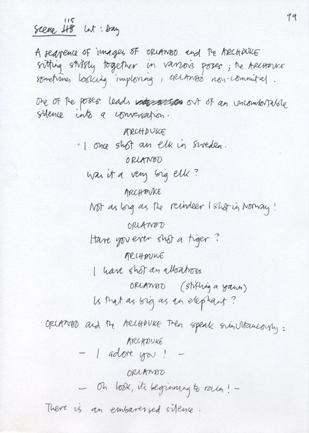 Description Page 99 of rough draft of scene 115. Hand written in black ink with pen annotations.