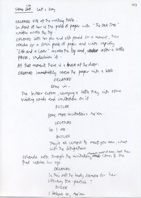Description Page 103 of rough draft of scene 117. Hand written in black ink with pen annotations.