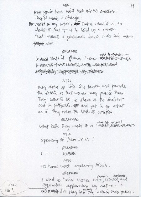 Description Page 119 of rough draft of scene 128. Hand written in black ink with pen annotations.