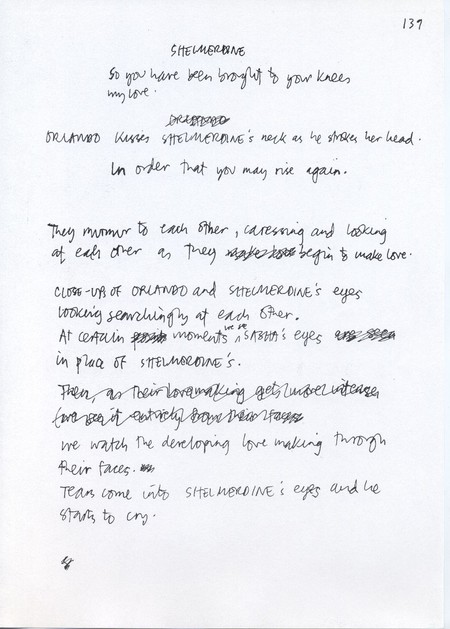 Description Page 139 of rough draft of scene 137. Hand written in black ink with pen annotations.