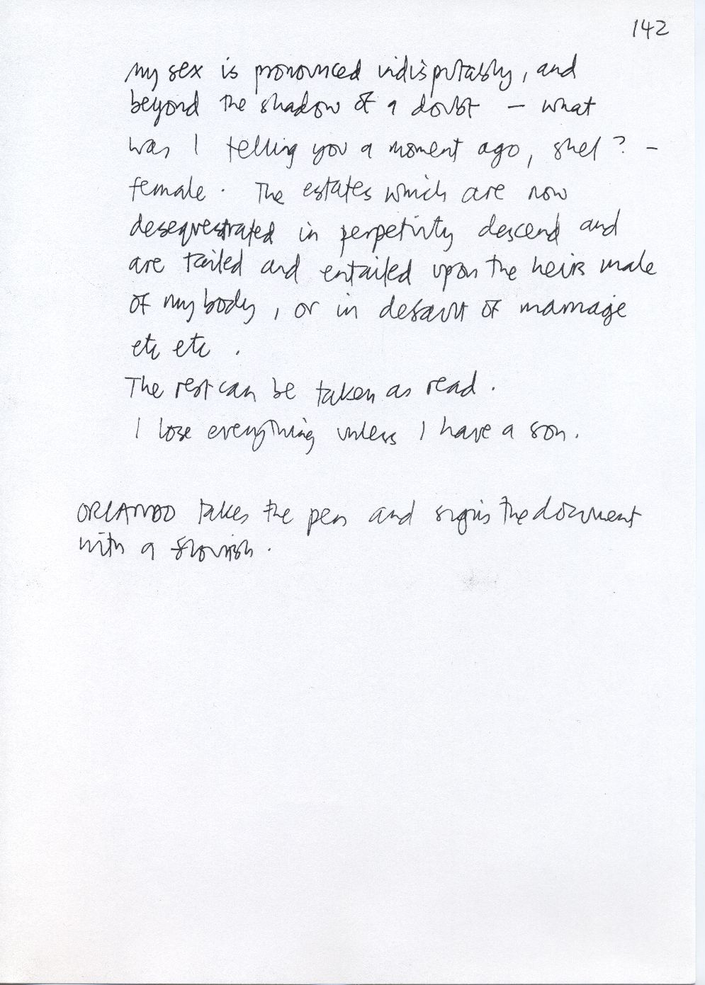 Description Page 142 of rough draft of scene 139. Hand written in black ink with pen annotations.