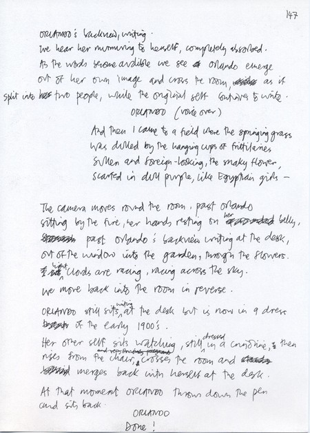 Description Page 147 of rough draft of scene 143. Hand written in black ink with pen annotations.