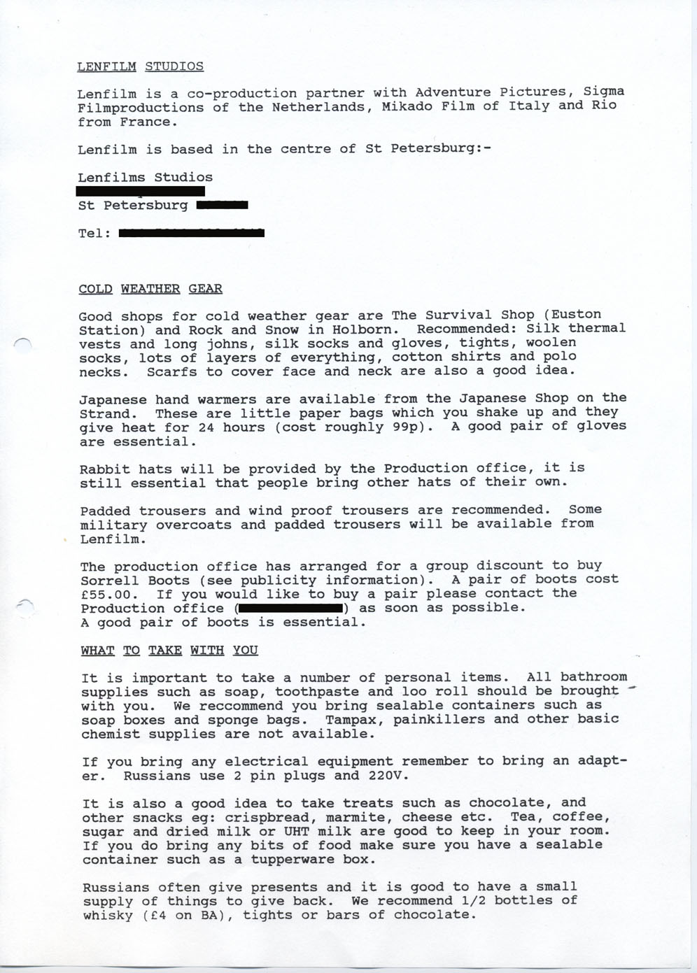 Description Page 3, General Information for St Petersburg shoot, A4 type written information and instructions in a big blue folder