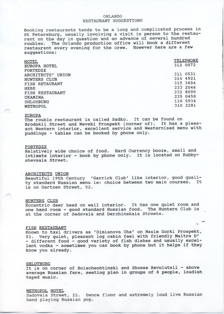 Description Page 4, General Informaton for St Petersburg shoot, A4 type written information and instructions in a big blue folder