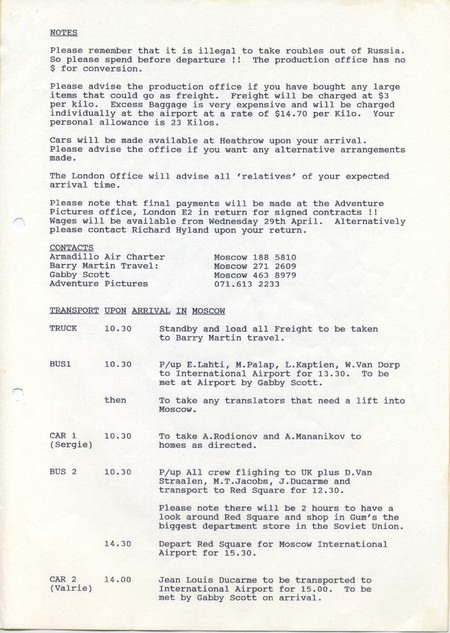 Description Page 2, typed A4 sheet showing details of arrangements upon arrival in Moscow from Urgench
