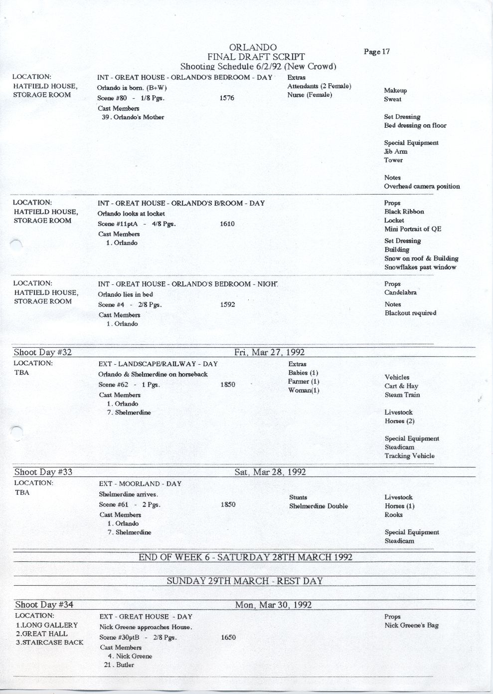 Description Page 17 of shooting schedule. A4 computer printed sheet