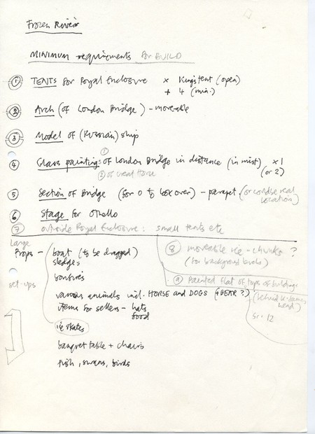 Description Minimum requirements for frozen river scene. Hand written A4 page.