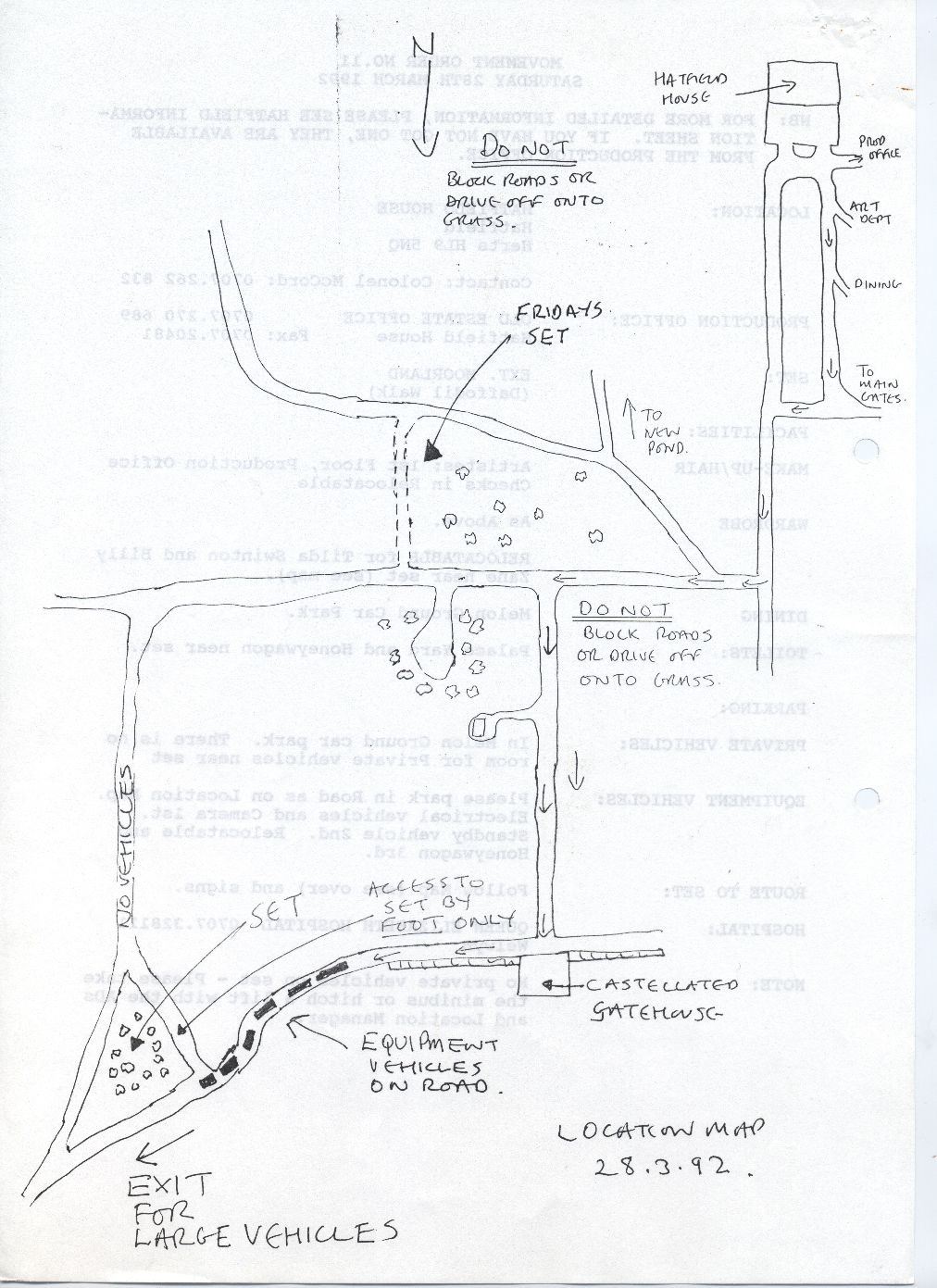 Description Reverse of Movement Order No.11. Hand drawn map of Moorland set in Hatfield House. Photocopied A4 sheet.