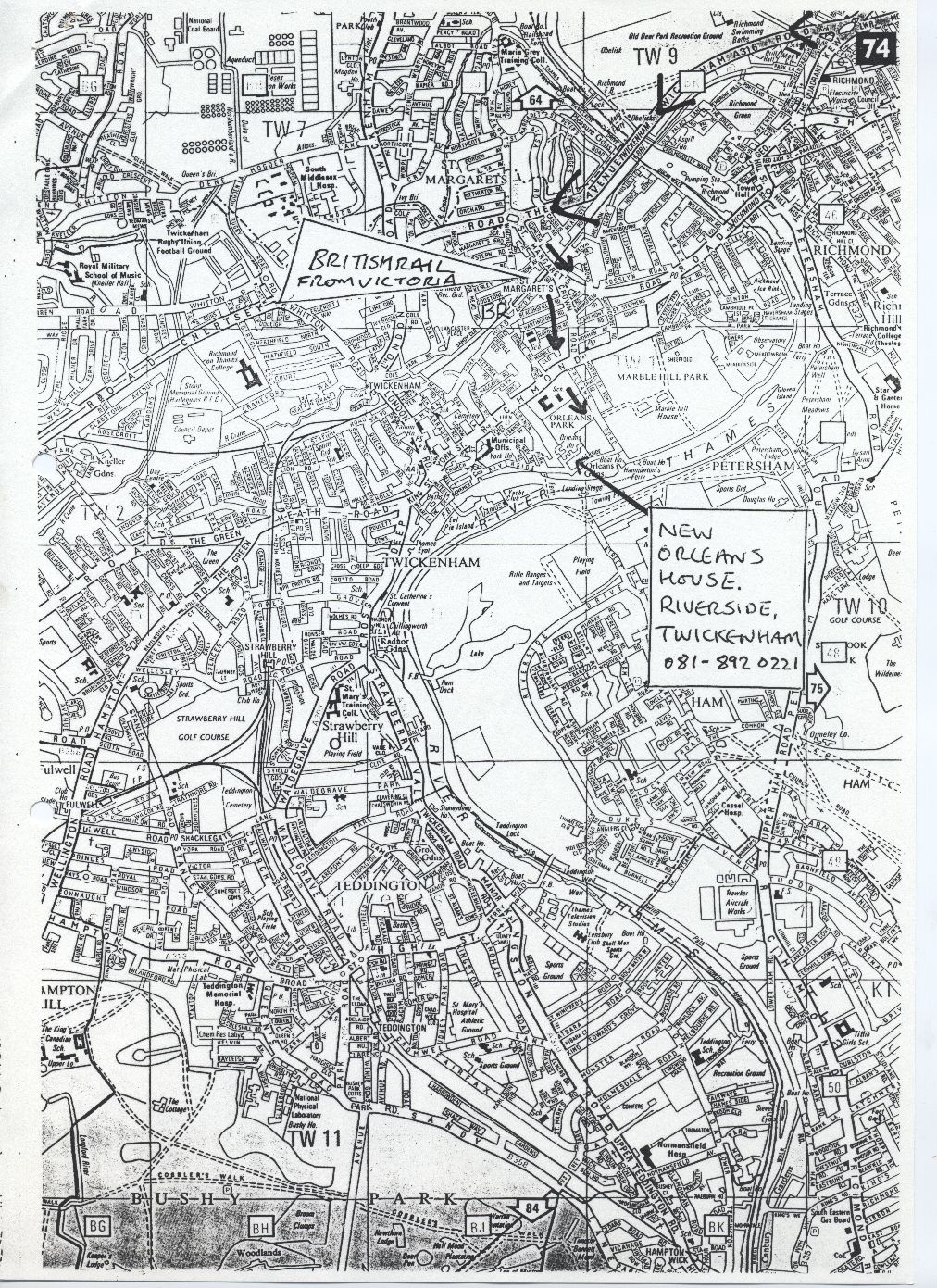 Description Printed map of route to Orleans House location with handwritten annotations, page 2. Photocopied A4 sheet.