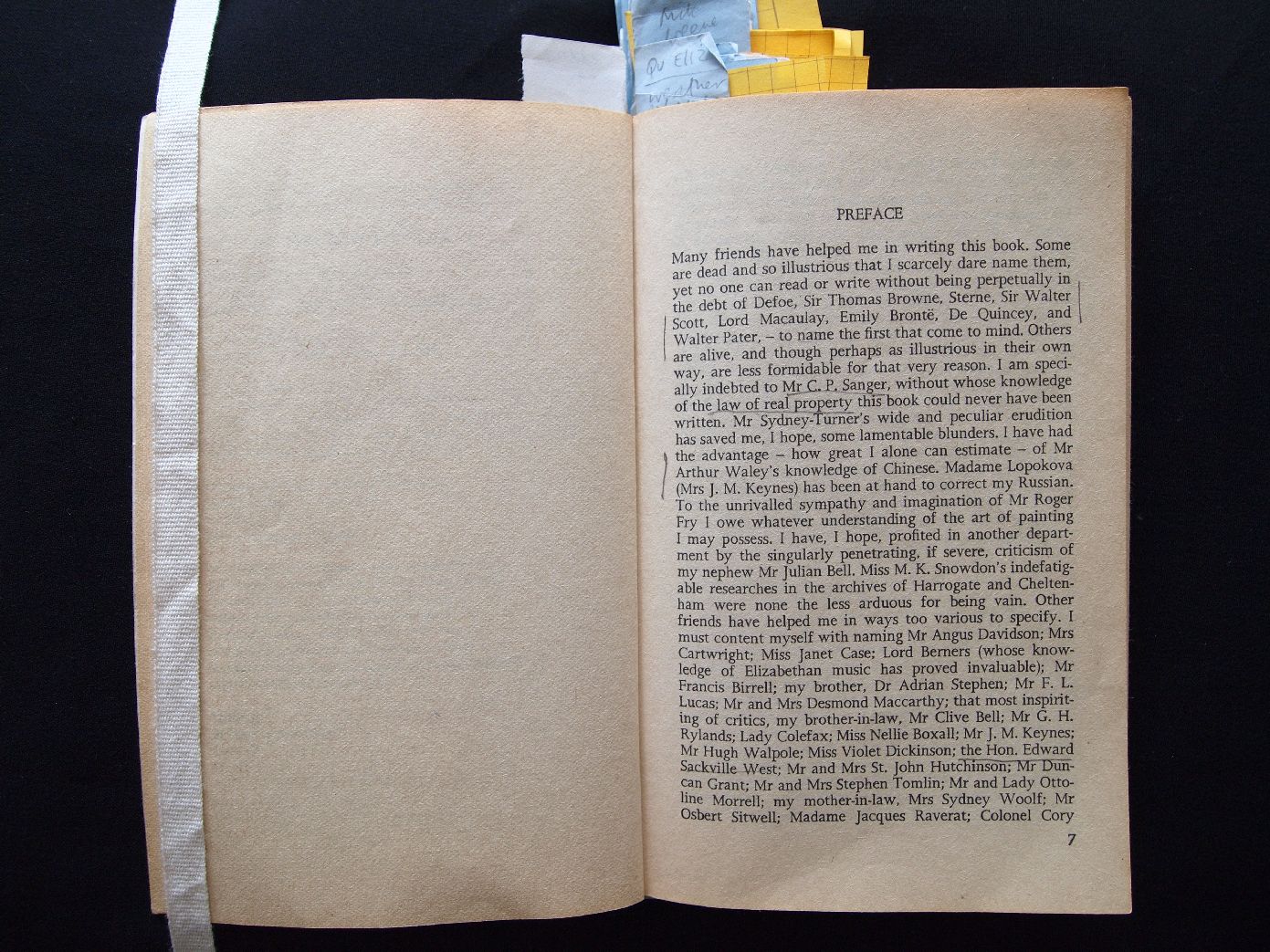 Description Original Novel, Blank page left, Preface page 7 right, annotated underlines and side lines