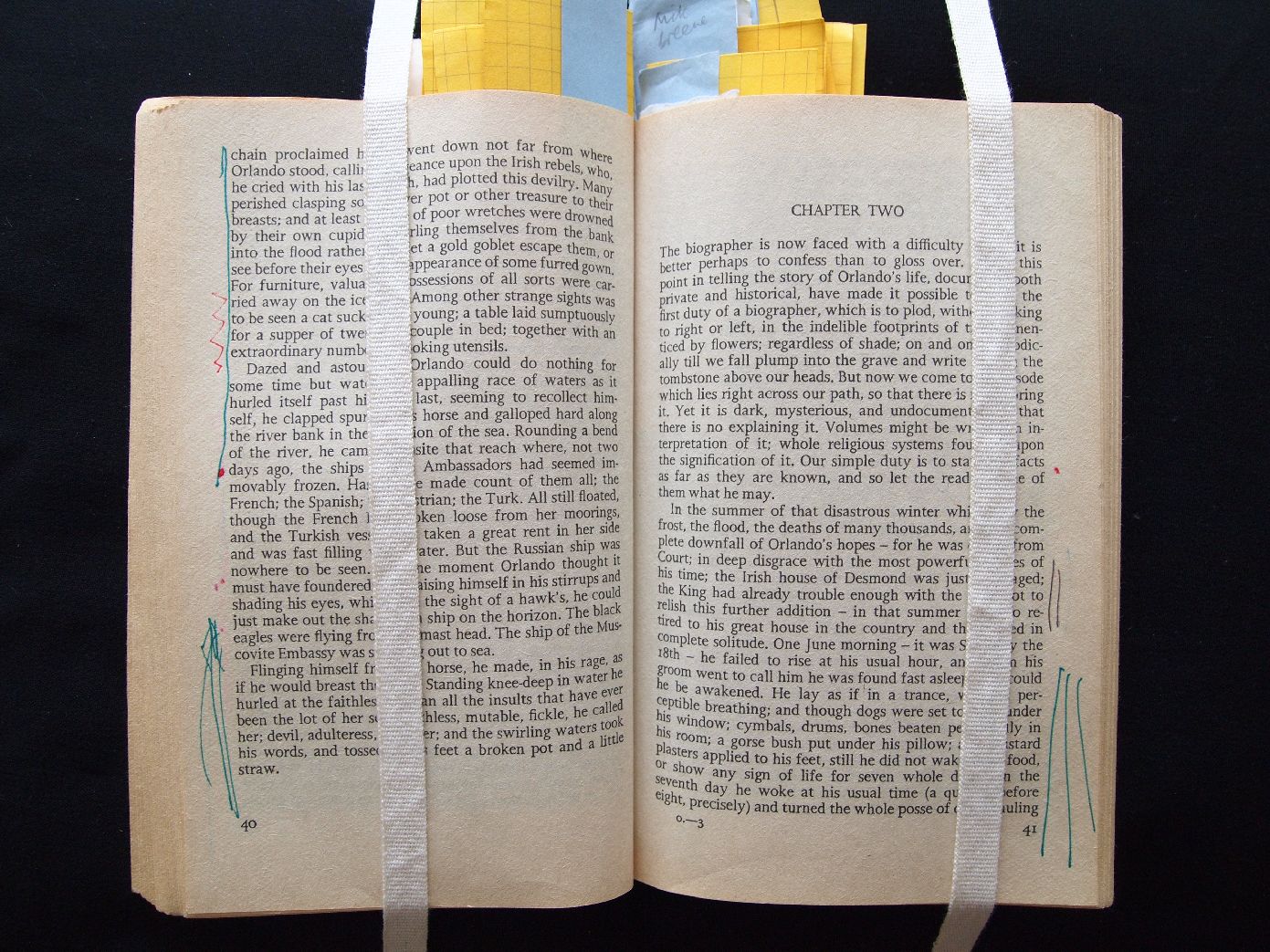 Description Original Novel, Page 40, green side line, page 41, Chapter 2, green and black side lines