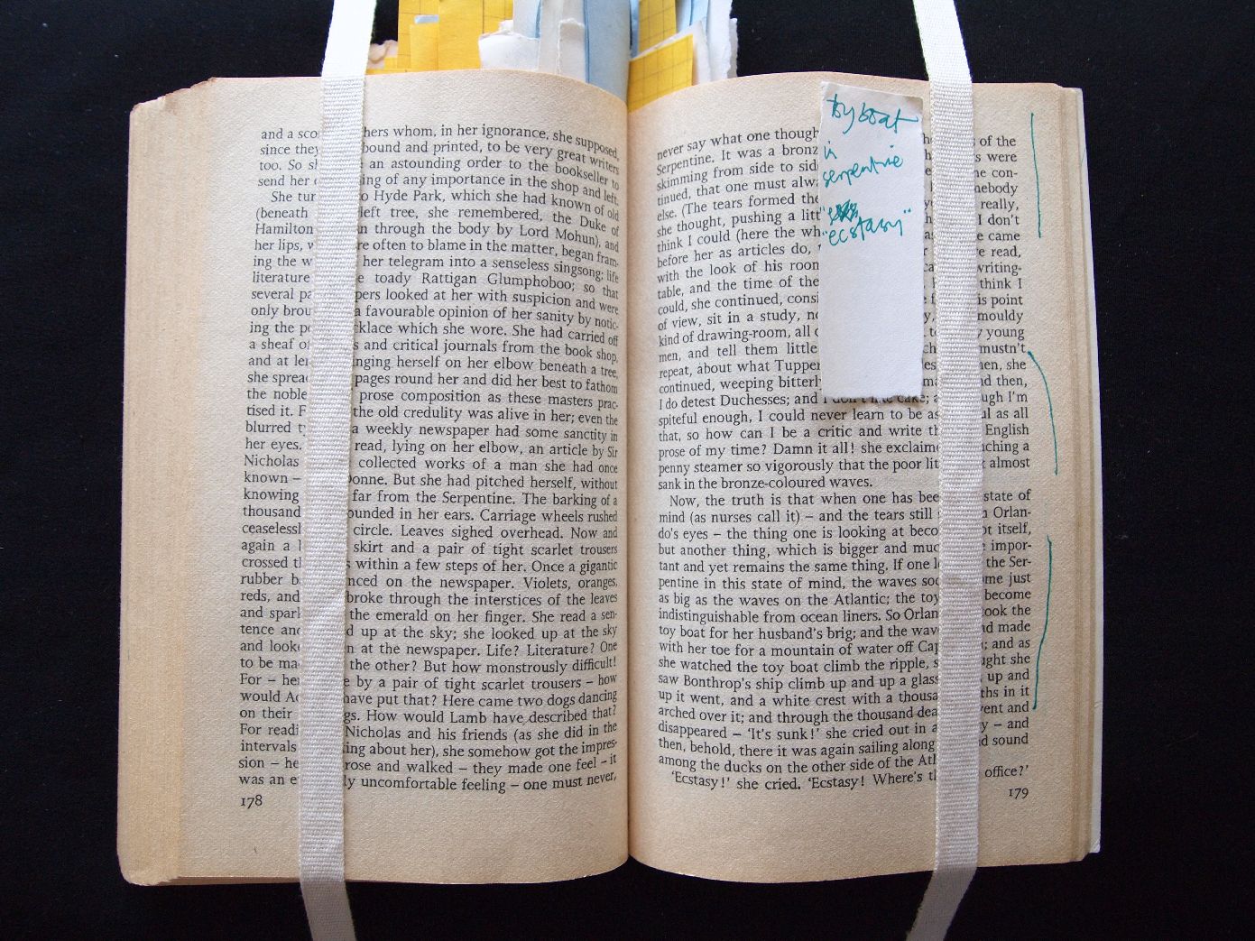 Description Original Novel, Page 178, page 179, green side lines, white bookmark "toy boat in serpentine, ecstacy"