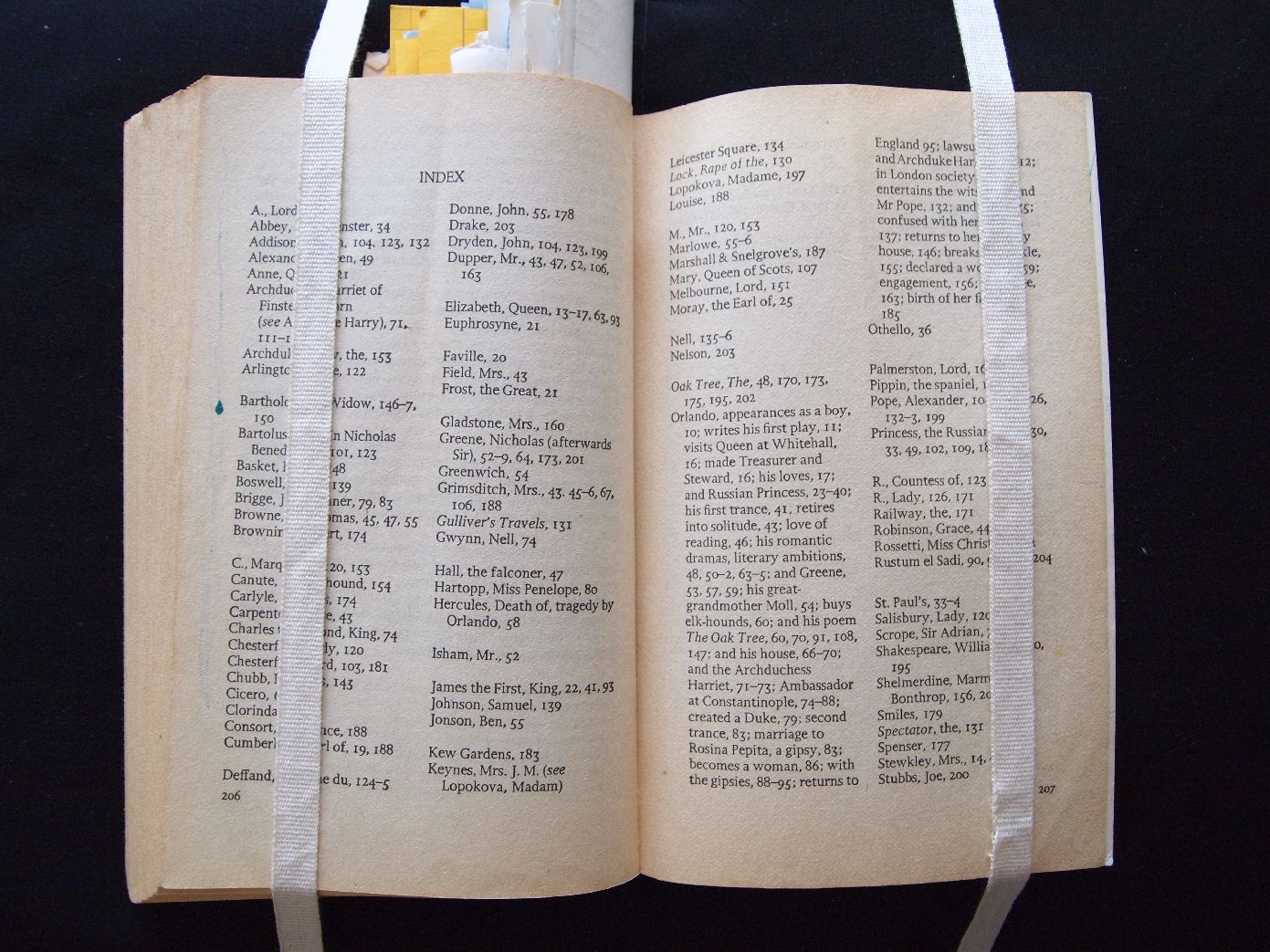 Description Original Novel, Page 206, green ink spot, Index beginning, page 207, index continued