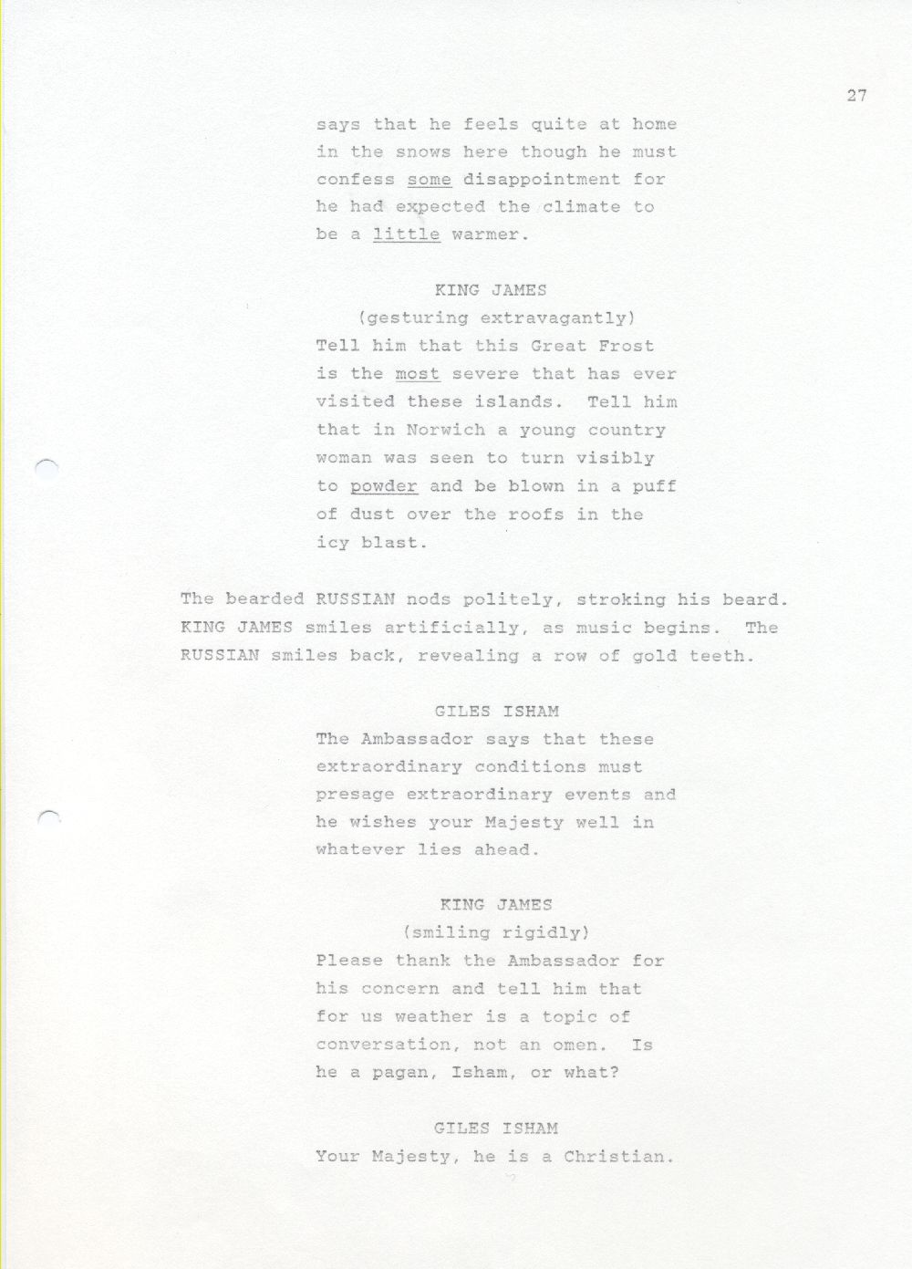 Description Black and white A4 computer printed, Paper, Revised draft of screenplay