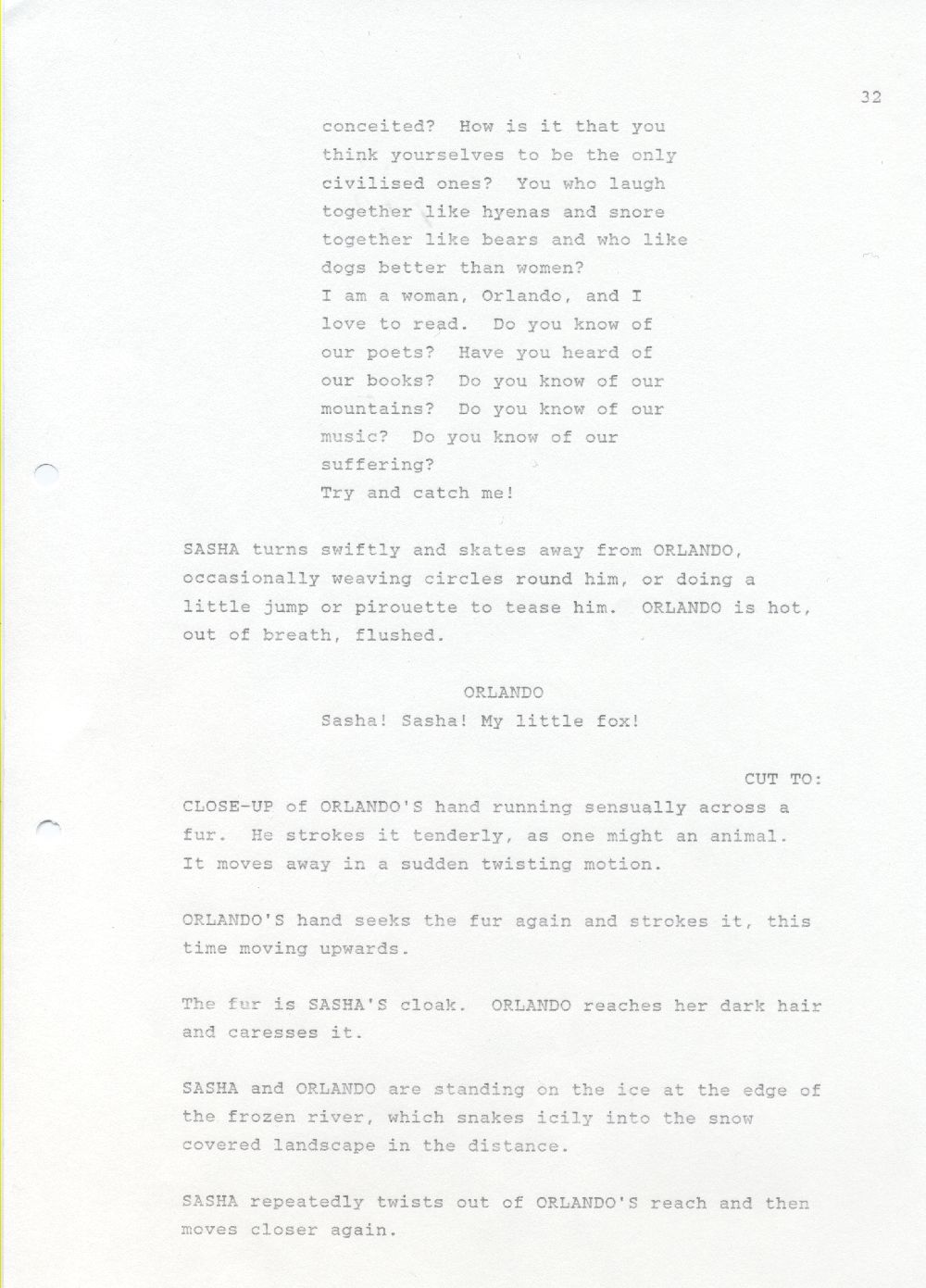 Description Black and white A4 computer printed, Paper, Revised draft of screenplay