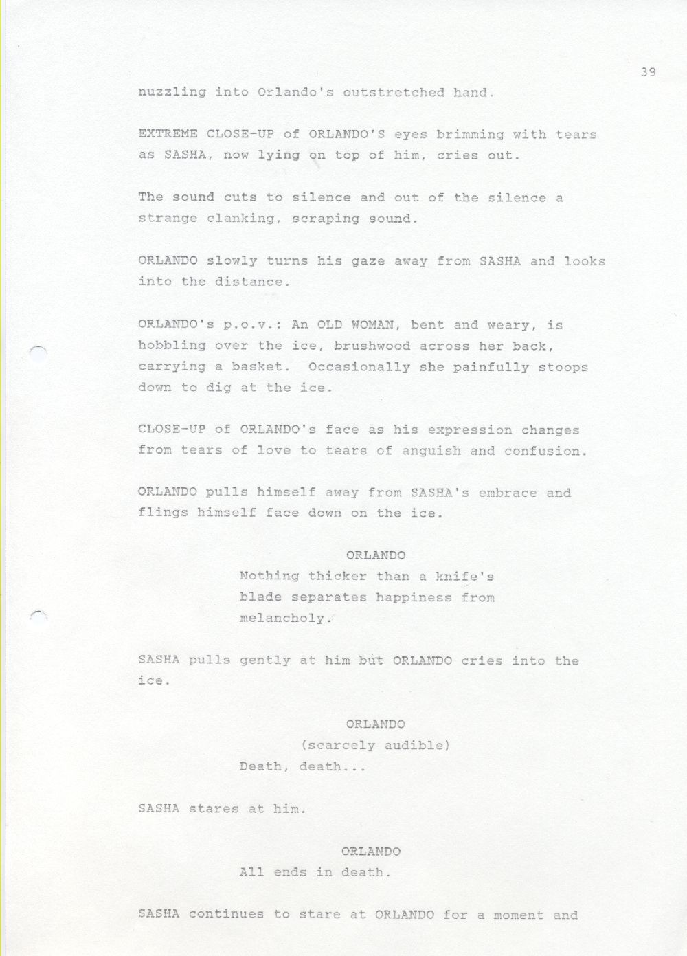 Description Black and white A4 computer printed, Paper, Revised draft of screenplay