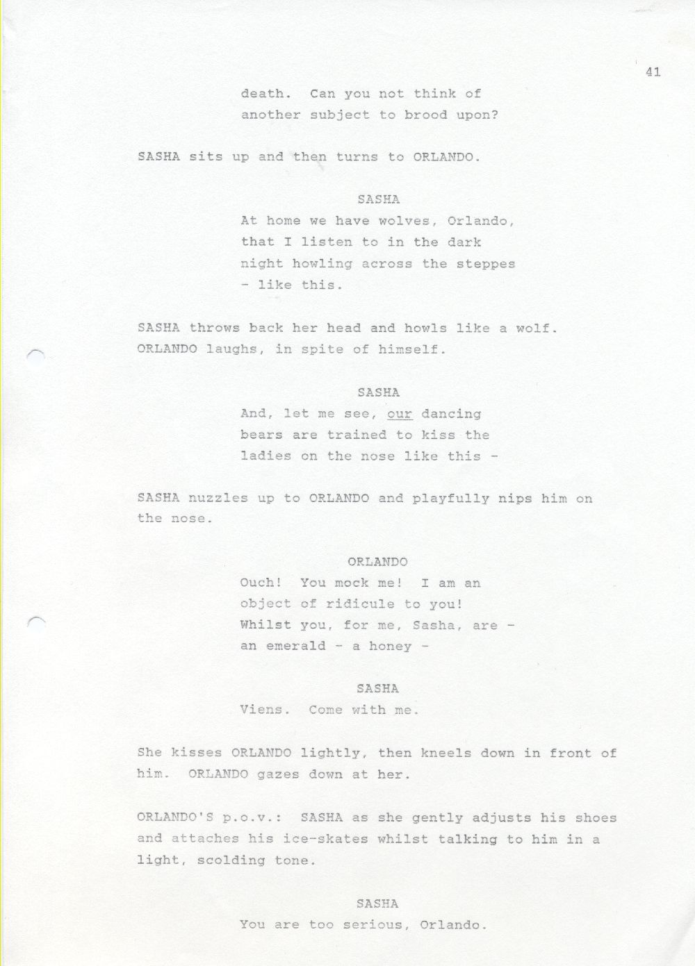 Description Black and white A4 computer printed, Paper, Revised draft of screenplay
