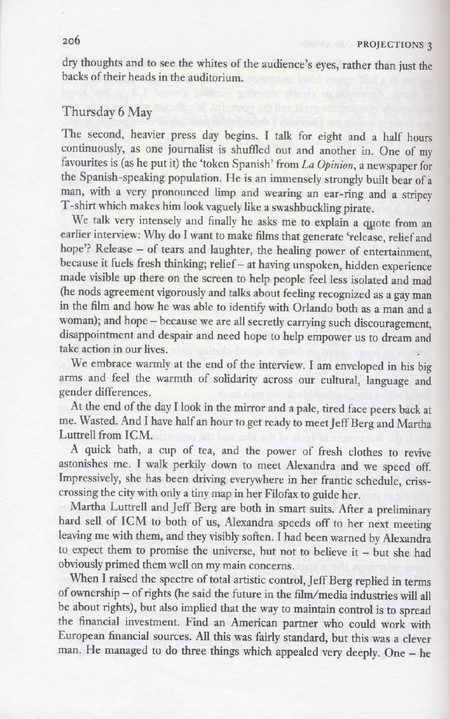 Description Black and white book pages, Paper, On Tour With '-Sally Potter's diary published in 'Projections 3' on 21/03/1994