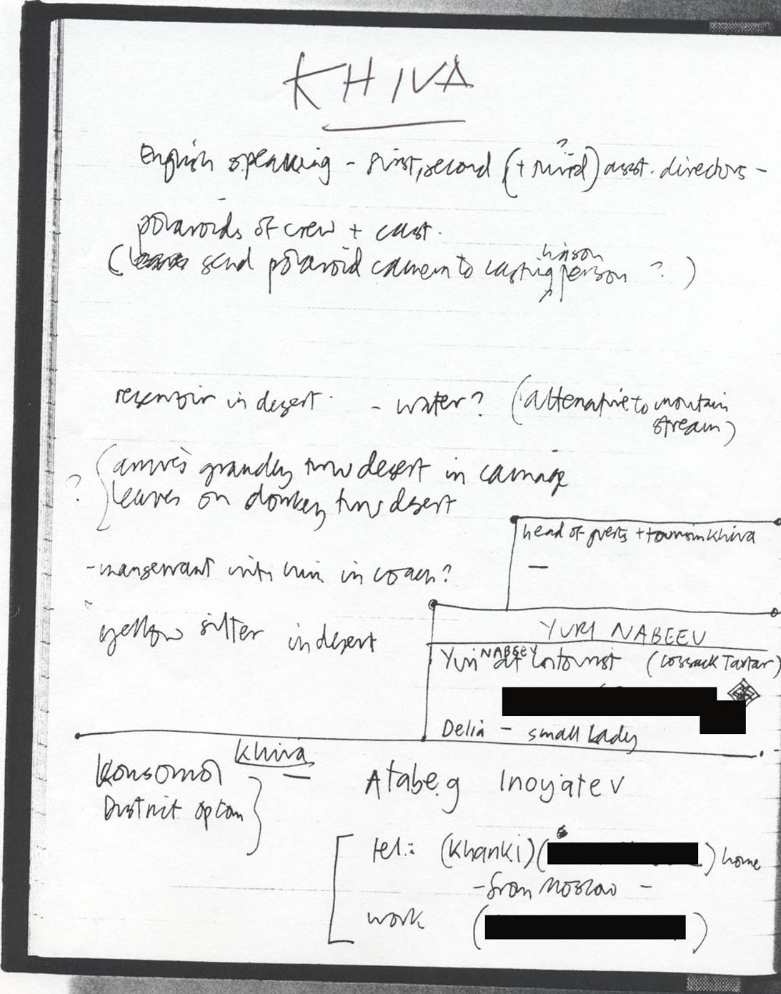 Description Black and white photocopy , Paper, Notes on Khiva and Islam, handwritten
