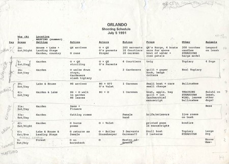 How does Orlando's manuscript come into being?Where does writing happen in the film and what does Orlando's manuscript mean?