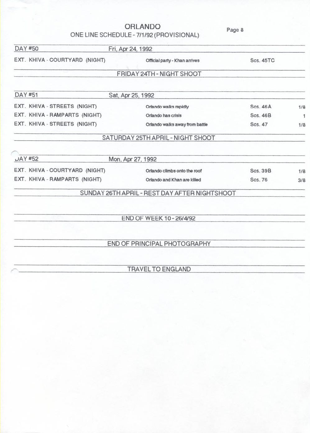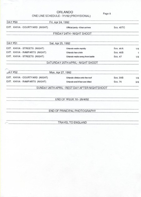 Description A4 Text document, Paper, One line provisional shooting schedule, Khiva