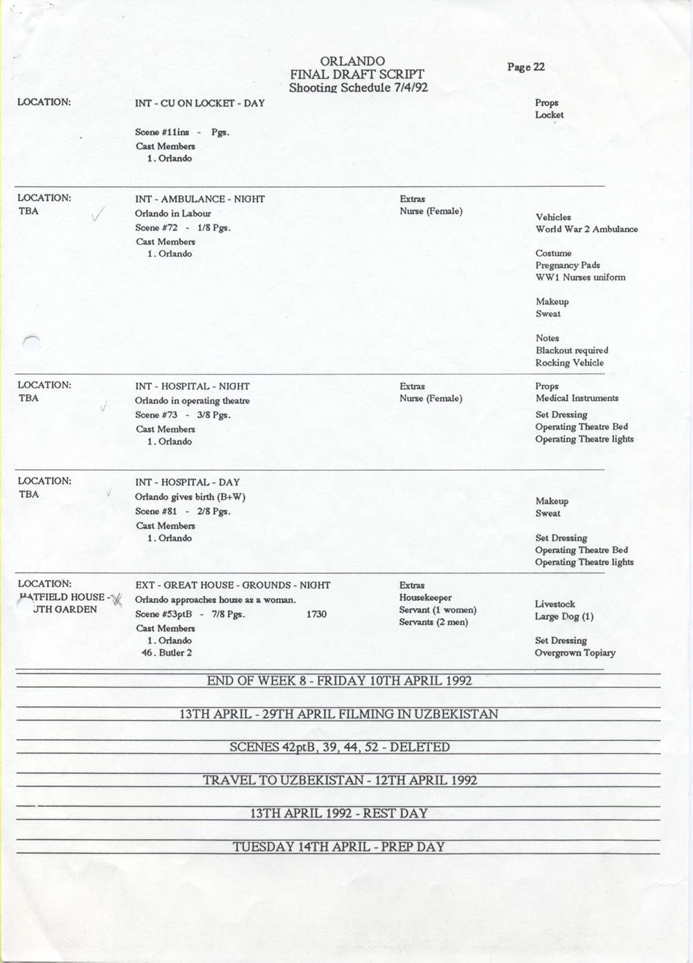 Description A4 computer paper with handwritten notes, Paper, Final draft shooting schedule