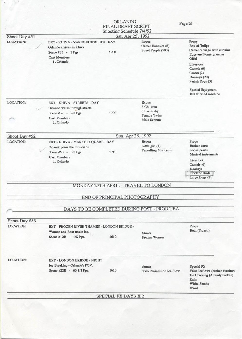 Description A4 computer paper with handwritten notes, Paper, Final draft shooting schedule