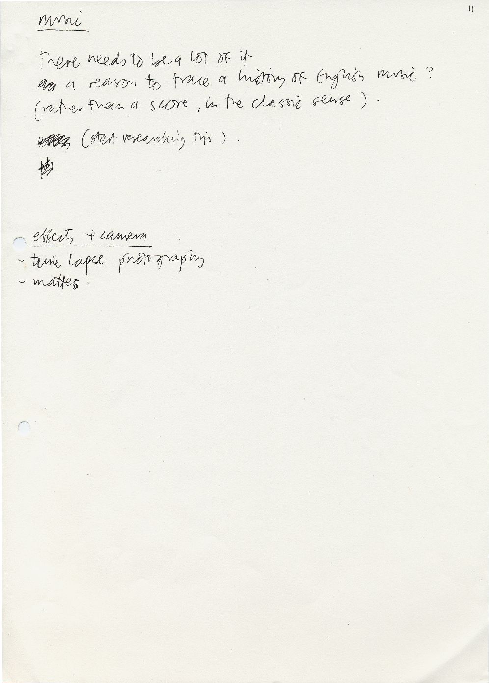 Description A4 pages, handwritten, Paper, Pre-draft handwritten notes on key scenes