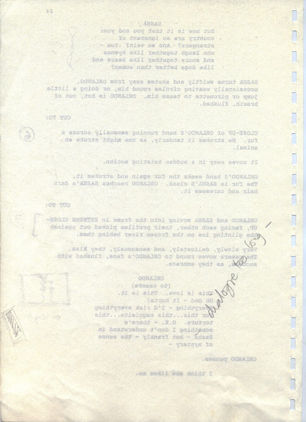 Description Revised draft script for Orlando, handwritten notes and diagrams in pencil, page 24, back
