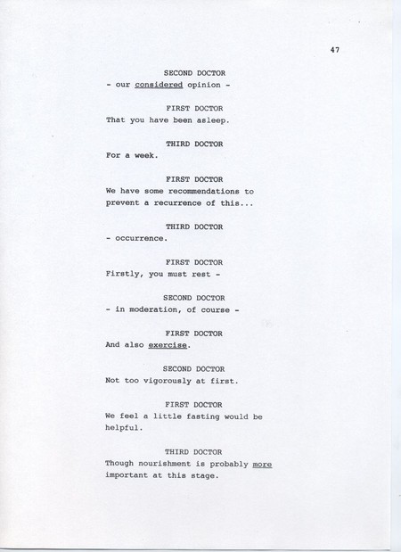 Description Page 47 of rough draft of scene 61. Black text on white A4 with pen annotations.