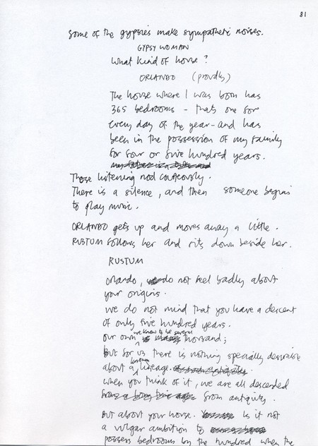 Description Page 81 of rough draft of scene 98. Hand written in black ink on A4 with pen annotations.