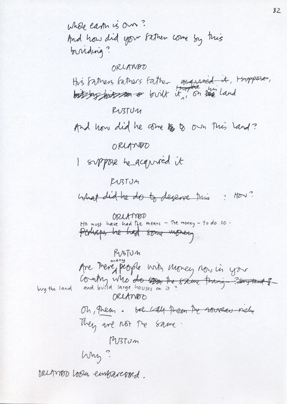 Description Page 82 of rough draft of scene 98. Hand written in black ink on A4 with pen annotations.