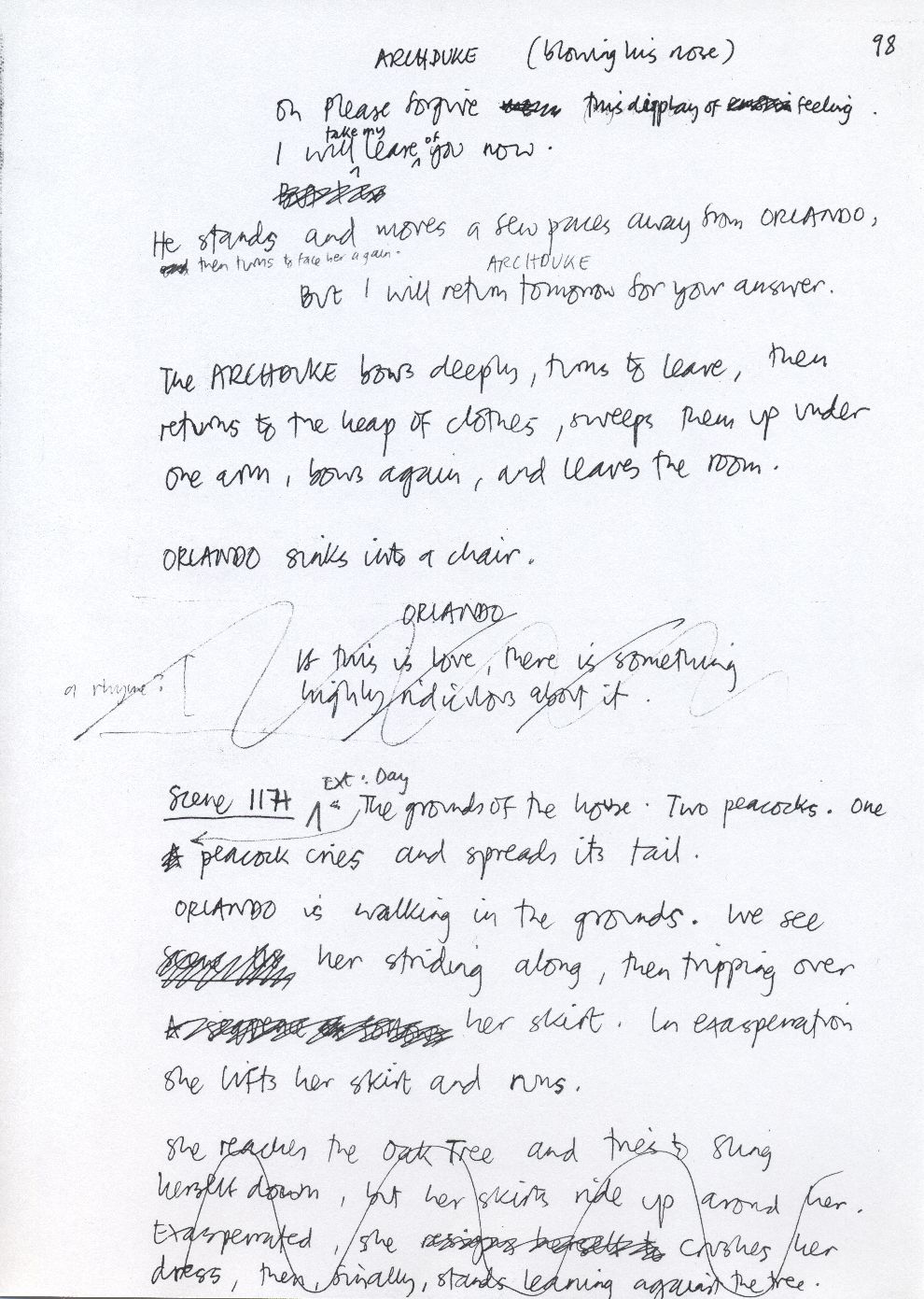 Description Page 98 of rough draft of scene 114. Hand written in black ink with pen annotations.