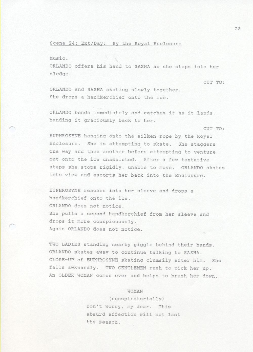 Description Black and white A4 computer printed, Paper, Revised draft of screenplay